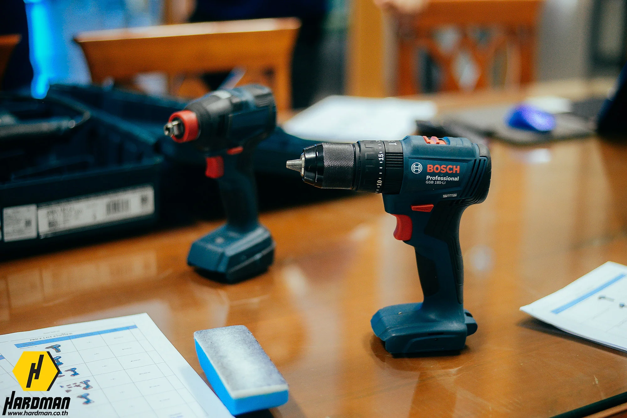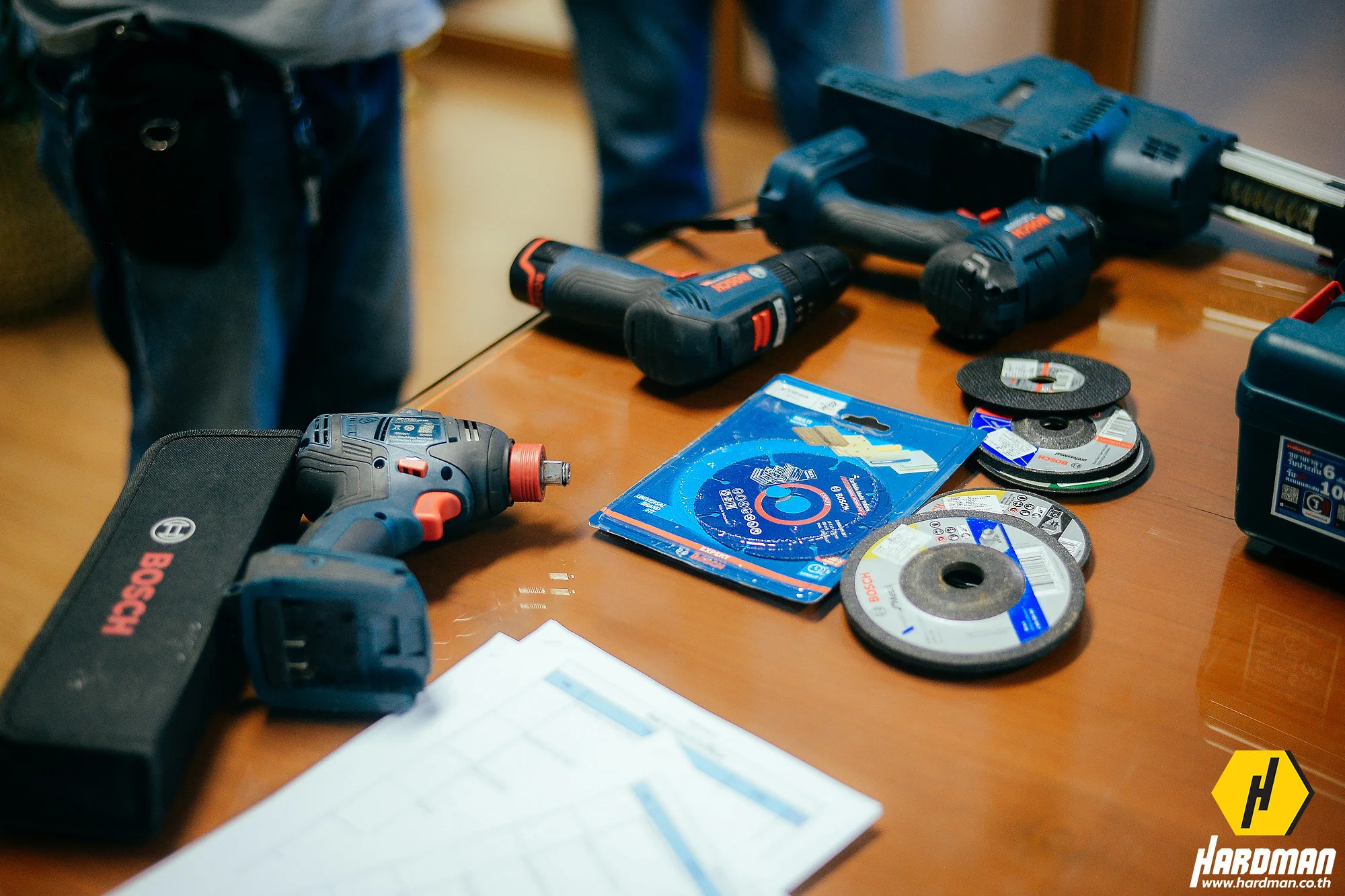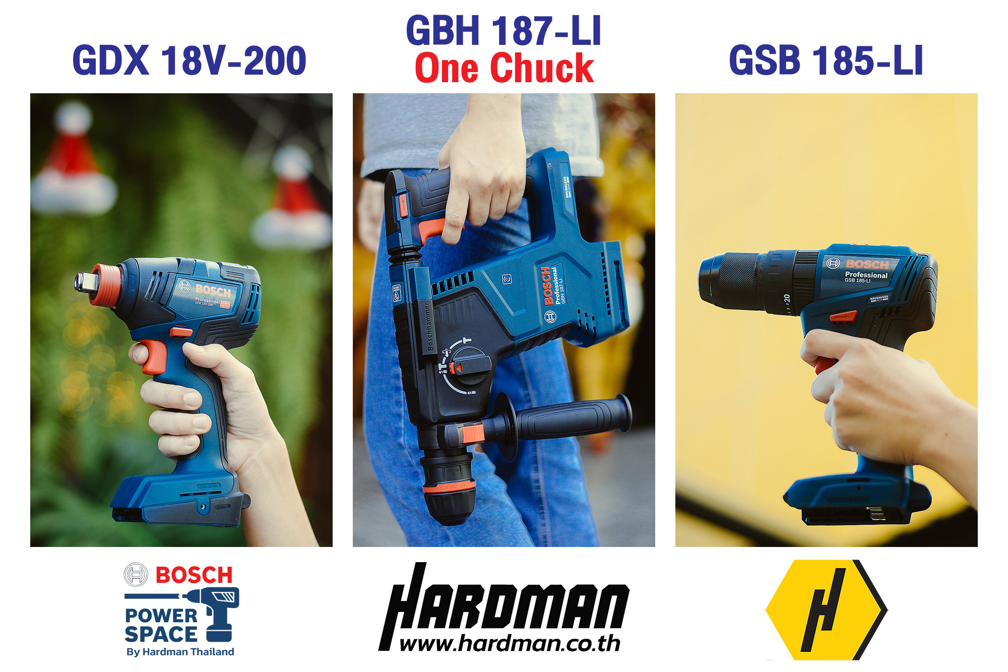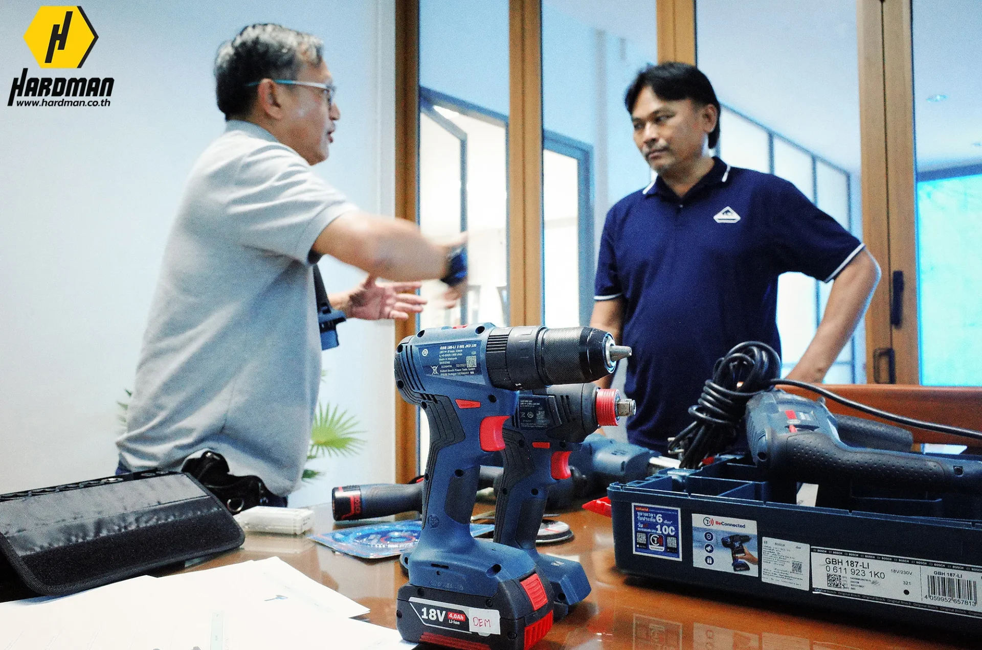 ผู้เชี่ยวชาญจากฮาร์ดแมนแนะนำเครื่องมือ BOSCH ด้วยกัน 2 ชุด คือ ชุดคอมโบสว่านกระแทกไร้สายจับคู่กับไขควงกระแทกไร้สาย (GSB 185 + GDX 18V-200) สำหรับงานเจาะอลูมิเนียมและยิงสกรู ตามมาด้วยชุดสว่านโรตารี่ไร้สาย GBH 187 One Chuck สำหรับงานเจาะปูน เจาะผนังเพื่อติดตั้งประตูและหน้าต่าง โดยเครื่องมือทั้ง 3 ชนิดนี้ สามารถใช้แบตเตอรี่ขนาด 18 โวลท์ร่วมกันได้ด้วย หากเครื่องมือไหนแบตเตอรี่หมดก็สามารถสลับแบตเตอรี่กับอีกเครื่องได้ ช่วยให้งานไม่สะดุด