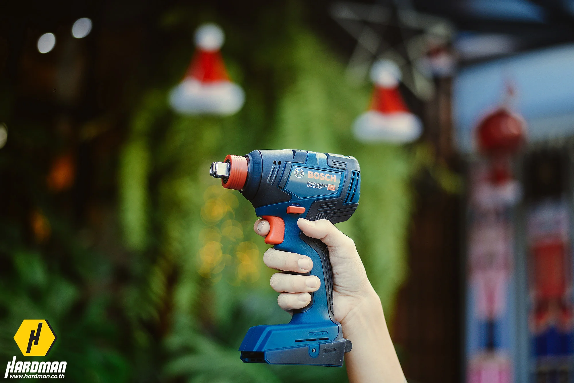 ไขควงกระแทกไร้สาย BOSCH GDX 18V-200 มีความพิเศษตรงที่หัวของมันถูกออกแบบมาให้ใส่ได้ทั้งดอกไขควงท้ายหกเหลี่ยม (ขนาด 1/4 นิ้ว) และลูกบล็อก (ขนาด 1/2 นิ้ว) จึงสามารถขันน็อตและยิงสกรูเกลียวปล่อย หรือขันน็อตตัวใหญ่ได้ โดยที่ไม่ต้องแปลงหัว