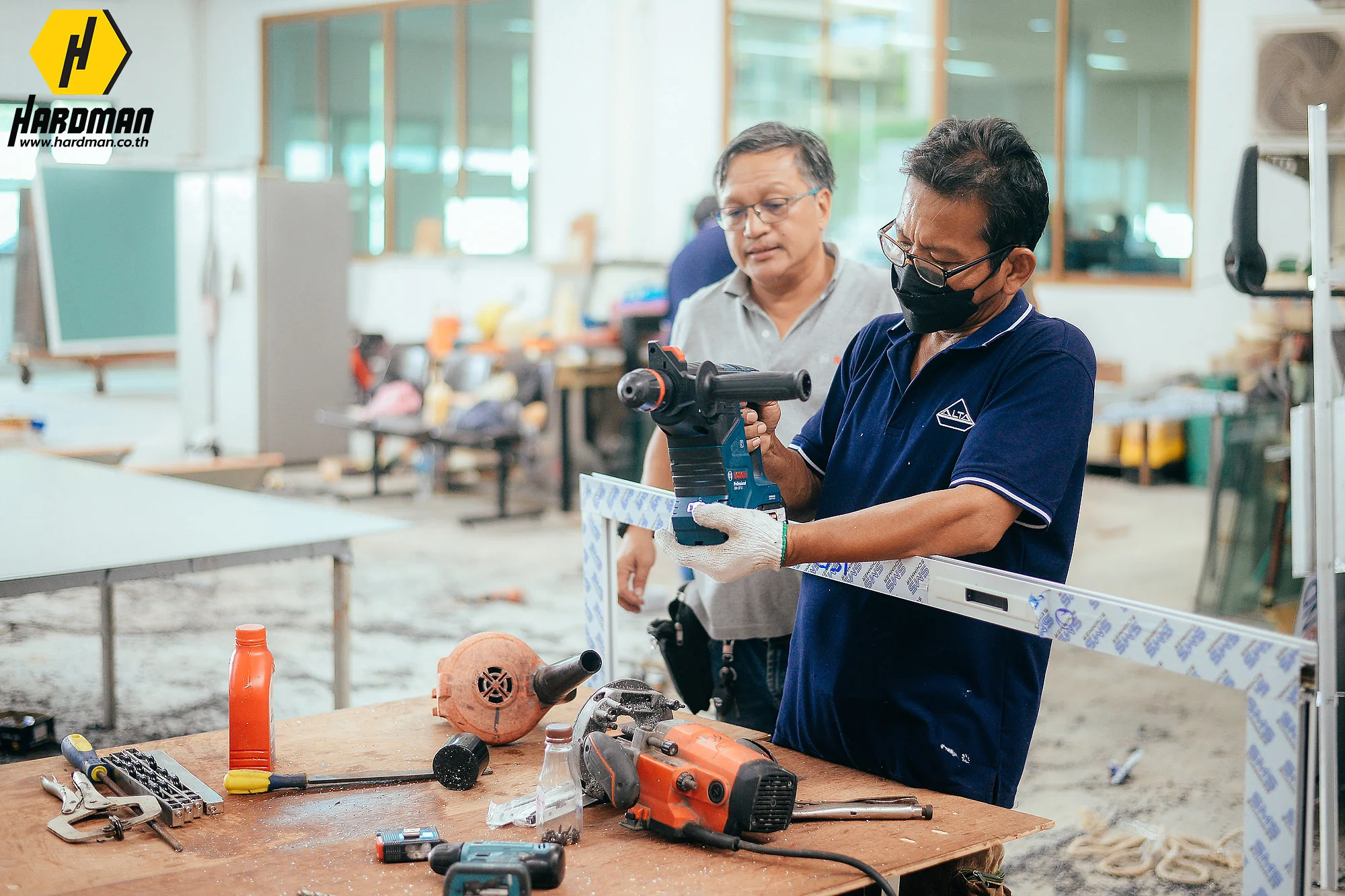 โดยทีมช่างผู้ชำนาญการตั้งแต่ขั้นตอนการผลิตอลูมิเนียมและกระจก รวมไปถึงการติดตั้งหน้างานให้กับลูกค้า ด้วยเครื่องมือช่างระดับมืออาชีพ และวันนี้บริษัทแอลต้าก็มีแผนขยายทีมติดตั้งหน้างาน จึงจำเป็นต้องหาเครื่องมือช่างเข้ามาเพิ่มเติม ฮาร์ดแมนจึงมีบริการ ONSITE ! นำเครื่องมือและผู้เชี่ยวชาญเครื่องมือ BOSCH เข้าไปหาถึงบริษัท เพื่อให้พี่ช่างได้ทดลองใช้สินค้าจริง