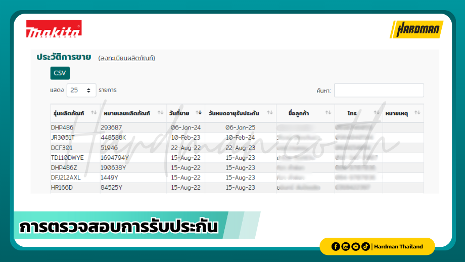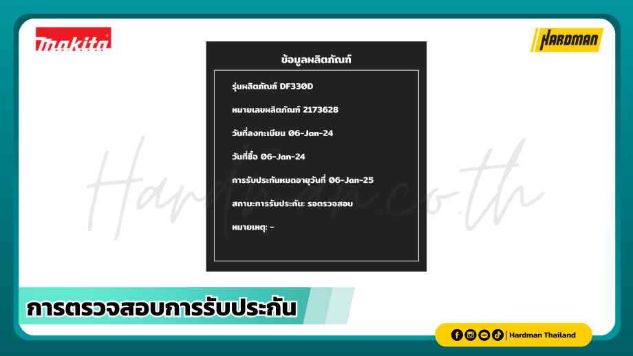 วิธีการลงทะเบียนรับประกันสินค้า MAKITA