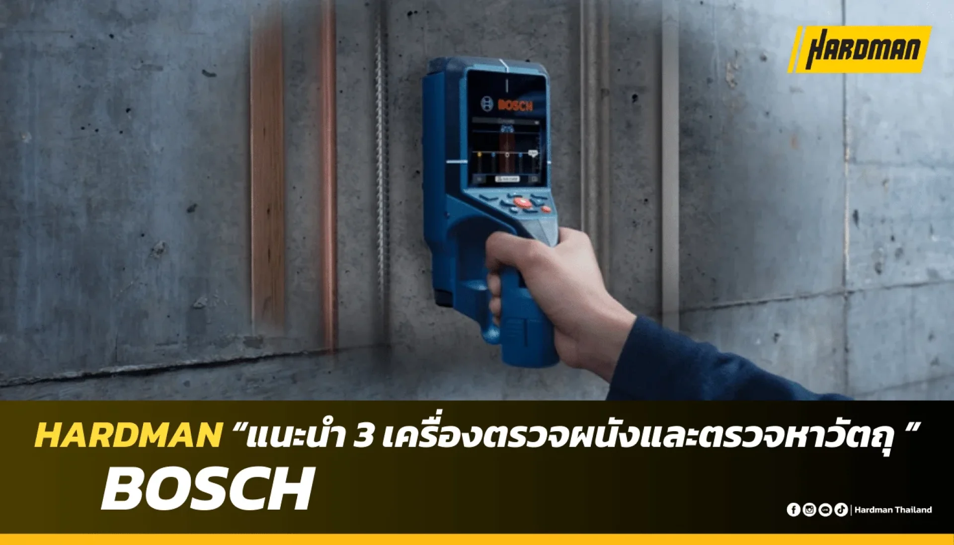 เครื่องตรวจผนังและตรวจหาวัตถุ BOSCH เป็นเครื่องมือที่จำเป็นมากเพราะถ้าเราไม่รู้ว่าตรงนั้นจะมีสิ่งกีดขวางอะไรบ้างเช่นท่อน้ำหรือไม่ก็สายไฟ ซึ่งถือว่าอันตรายมาก