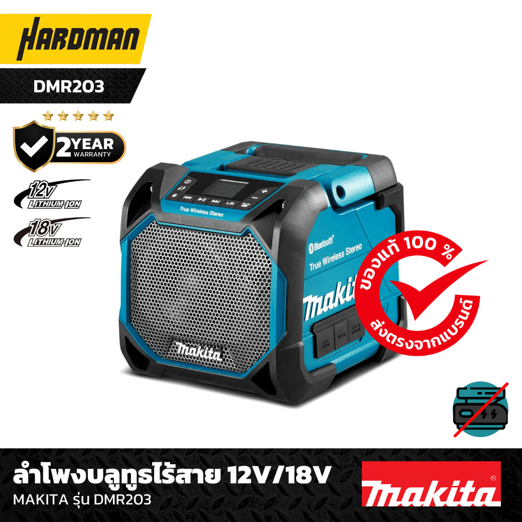 เป็นลำโพงตัวเล็กพกพาง่ายสามารถใช้ได้กับ แบตเตอรี่ 12 โวลต์ / 18 โวลต์ รองรับ Bluetooth เวอร์ชั่น 5.0 เทคโนโลยี True Wireless Stereo (TWS) ให้ผู้ใช้จับคู่ DMR203