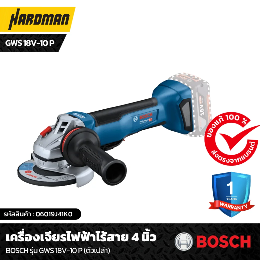 เป็นเครื่องเจียรไร้สายตัวเปล่าจาก BOSCH มอเตอร์แบบไม่ใช้แปรงถ่านประสิทธิภาพสูง ช่วยให้เครื่องมีกำลังเทียบเท่าเครื่องมือแบบมีสายไฟขนาด 700 วัตต์ น้ำหนัก น้ำหนัก 1.4 กก ไม่รวมแบตเตอรี่ เส้นผ่าศูนย์กลางแกนยึดแผ่นเจียร 22.23 มม. มอเตอร์ไร้แปลงถ่านเหมาะสำหรับช่างที่ต้องใช้งานนานๆ และยังมีประกันให้อีก1ปีสบายใจหายห่วง