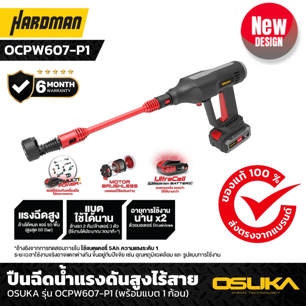 4.ปืนฉีดน้ำแรงดันสูงไร้สาย 60 บาร์ OSUKA รุ่น OCPW607-P1
