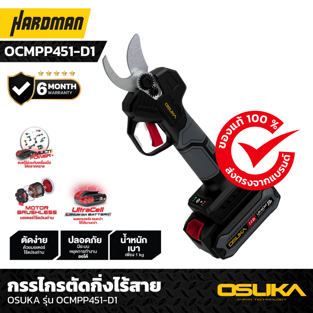 6.กรรไกรตัดกิ่งไร้สาย 20V OSUKA รุ่น OCMPP451-D1