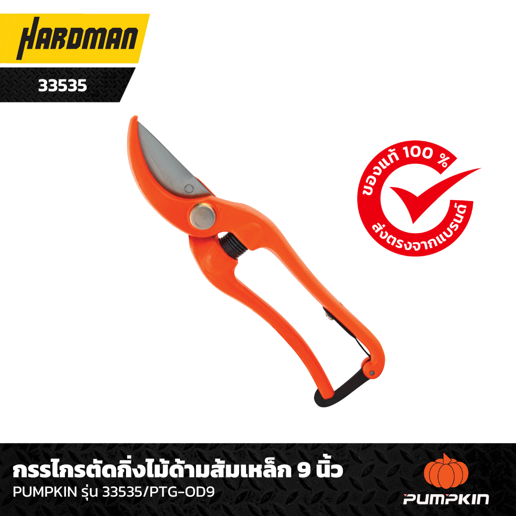 1.กรรไกรตัดกิ่งไม้ด้ามส้มเหล็ก 9 นิ้ว PUMPKIN รุ่น 33535/PTG-OD9