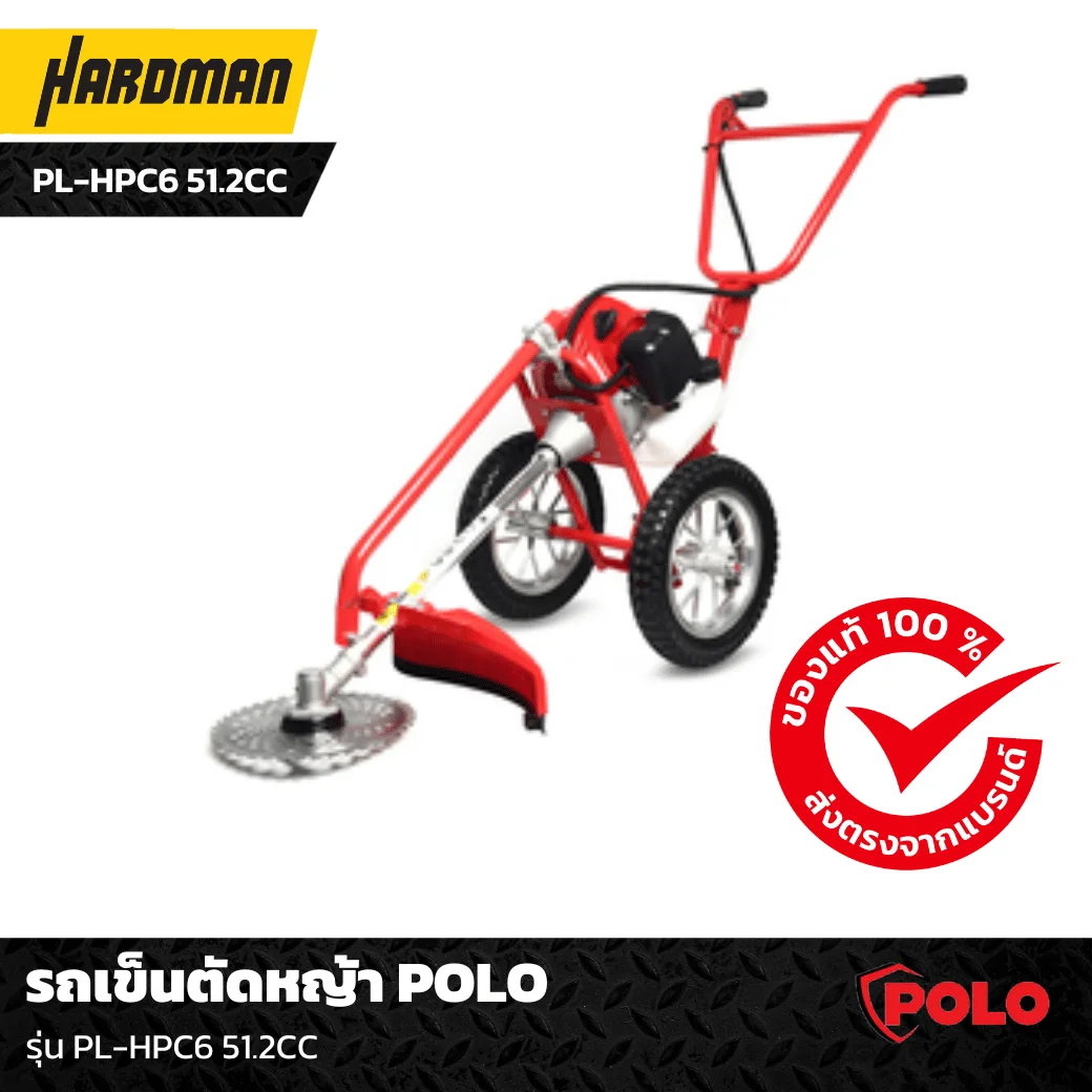 มาถึงรุ่นพี่ใหญ่สุดของ POLO ที่เป็นรถเข็นสามารถเคลื่อนที่ได้ ใช้งานง่าย และเหมาะสำหรับงานขนาดปานกลางและขนาดเล็ก ด้วยเครื่องยนต์ 2 จังหวะ ขนาด 51.2 CC กำลัง 1.9 แรงม้า ความเร็วรอบ 9,000-10,000 รอบ/นาที ใบมีดตัดหญ้าขนาด 25.4 ซม.