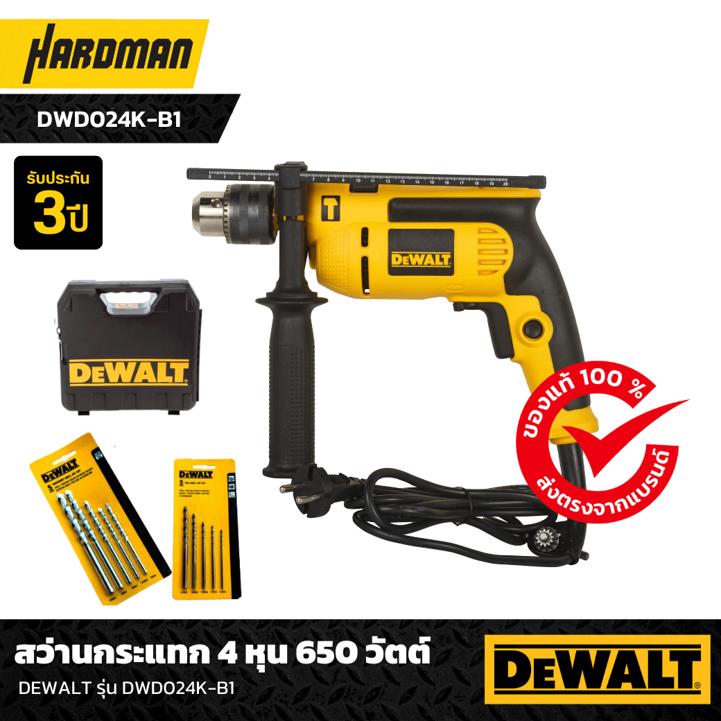 3. สว่านกระแทก 4 หุน 650 วัตต์ DEWALT รุ่น DWD024K-B1