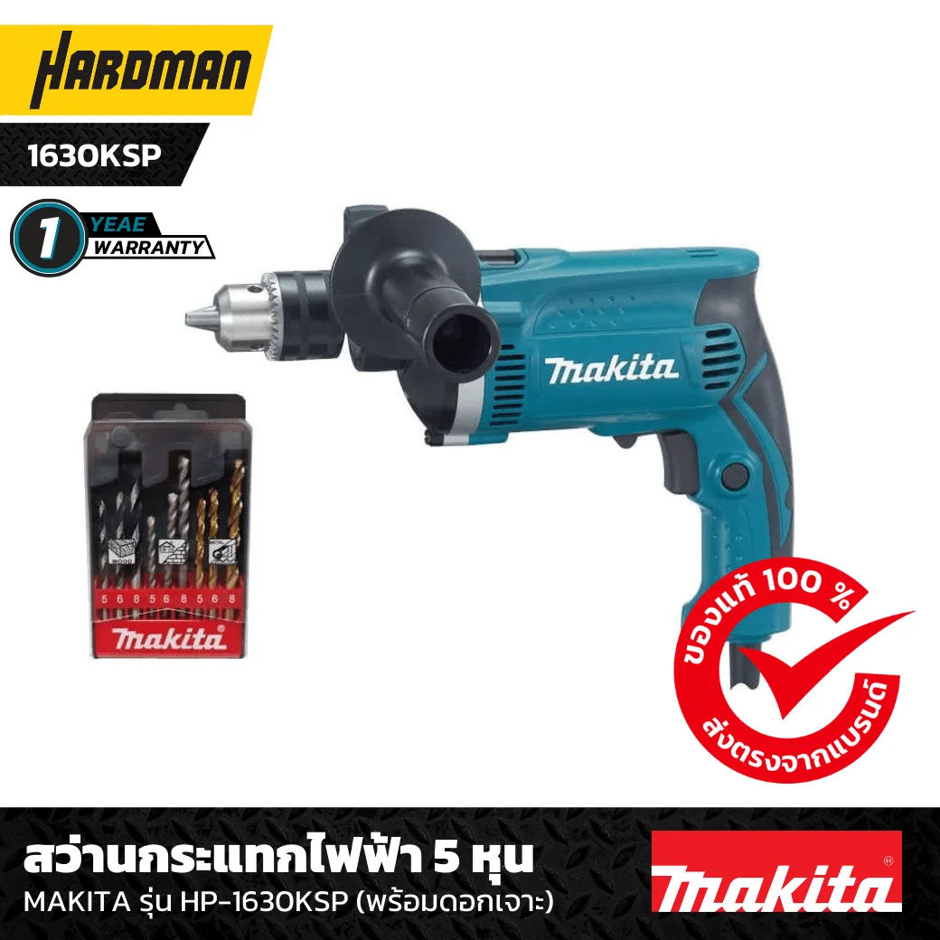 5. สว่านกระแทกไฟฟ้า 5 หุน MAKITA รุ่น HP-1630KSP (พร้อมดอกเจาะ)