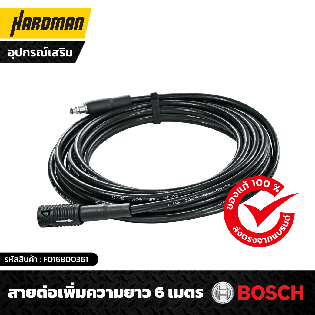 ถ้าใครยังไม่พอใจกับความยาวทาง BOSCH ก็มีจัดให้เพิ่มกับสายต่อเพิ่มความยาวทำให้ใช้งานได้ไกลขึ้น ตัวสายรองรับขนาดแรงดันถึง 135 บาร์ อีกด้วย