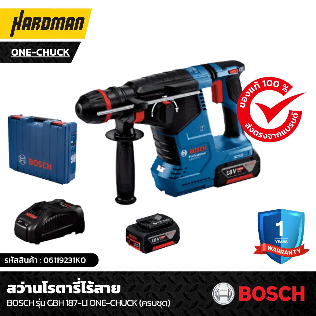 2.สว่านโรตารี่ไร้สาย BOSCH รุ่น GBH 187-LI One-chuck
