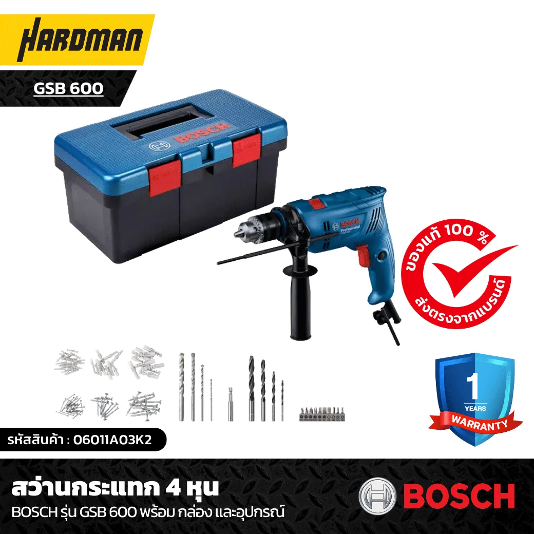 ตัวแรกเริ่มกับตัวมีสายที่ราคาไม่แพงและอุปกรณ์ครบพร้อมกล่องเก็บเครื่องมิอ มอเตอร์กำลัง 600 วัตต์ ทำงานได้อย่างทรงพลังและมีประสิทธิภาพ เหมาะสำหรับงานเจาะและขันสกรูต่างๆ เช่น งานไม้ งานเหล็ก งานโลหะ งานก่อสร้าง หรืองานซ่อมแซม
