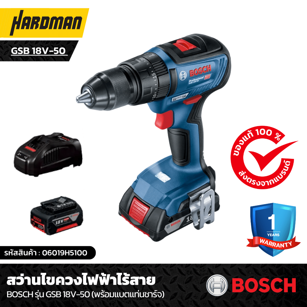 มาถึงตัวไร้สายกันบ้างเราอยากจะขอแนะนำ GSB 18V-50 ตัวนี้เป็น heavy duty ของ bosch ที่อยากแนะนำเหมาะมากสำหรับช่างมืออาชีพเป็นอย่างมาก ตัวเครื่องเป็นมอเตอร์แบบไร้แปรงถ่าน ทำงานได้ยาวนาน แรงกระแทกสูงสุด 50 Nm เจาะและขันสกรูได้อย่างมีประสิทธิภาพ