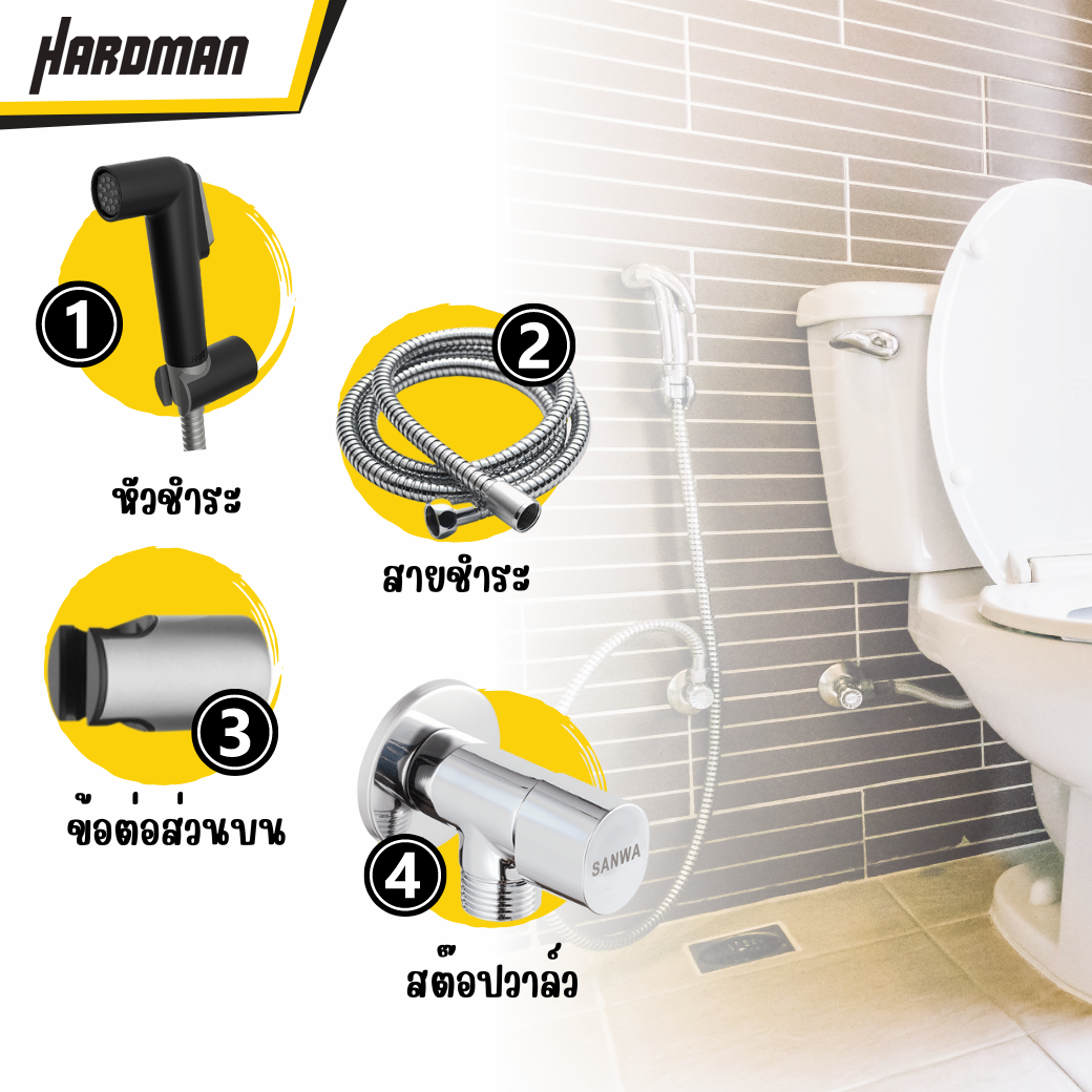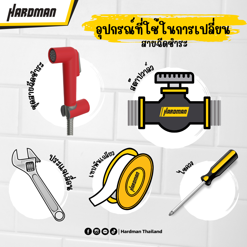 สายฉีดชำระ เป็นอีกหนึ่งอุปกรณ์ที่พบเห็นได้ตามบ้าน หอพักหรือคอนโดมิเนียม และเป็นอุปกรณ์สำคัญที่ขาดไม่ได้เลย ในชีวิตประจำวัน แต่เมื่อใช้งานไปนาน ๆ อุปกรณ์ภายในของสายฉีดชำระมักเกิดการชำรุด อย่าง ‘ตัวสต๊อปวาล์ว (Stop Value)’ ที่มีคุณภาพต่ำ ‘ชิ้นส่วนโลหะเกิดการสึกหรอ’ หรือเป็นสนิมเร็ว หรือ’ปะเก็นยาง (แหวนยาง)’ มีการฉีกขาด ทำให้เกิดปัญหาน้ำรั่ว น้ำหยดตามมาได้ จนบางครั้งต้องเสียเงินจ้างช่างแบบเสียประโยชน์ นอกจากเสียเงินเเละเสียเวลาในรอช่างมาอีก วันนี้ HARDMAN ขอนำเสนอวิธีการเปลี่ยนสายชำระแบบง่าย ๆ ที่คุณก็สามารถเปลี่ยนเองได้