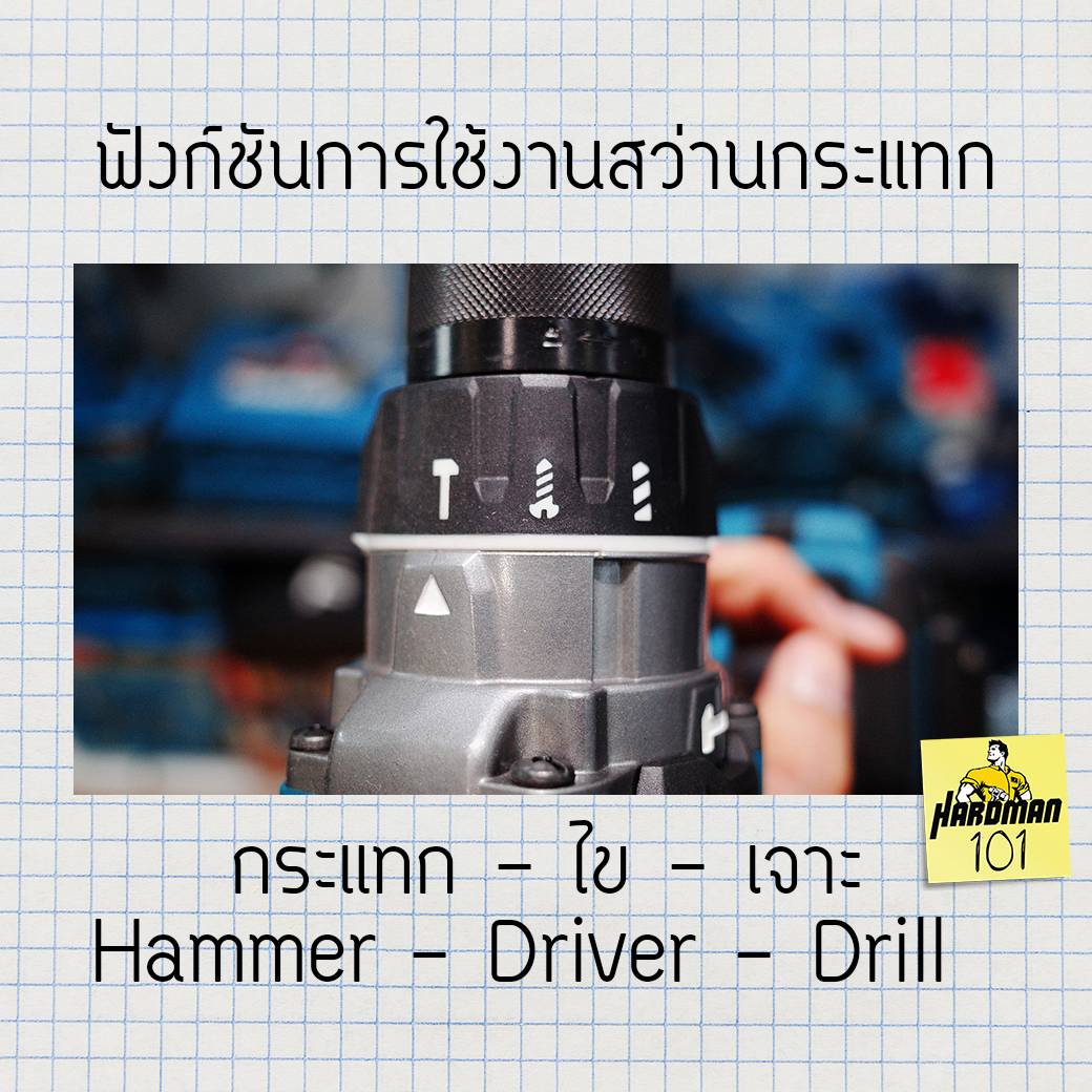 Hammer จะให้แรงกระแทกคนละทิศทางกับการหมุน มันจะกระแทกเหมือนเอาค้อนมาตอกดอกสว่านให้เจาะลงไปในเนื้องาน