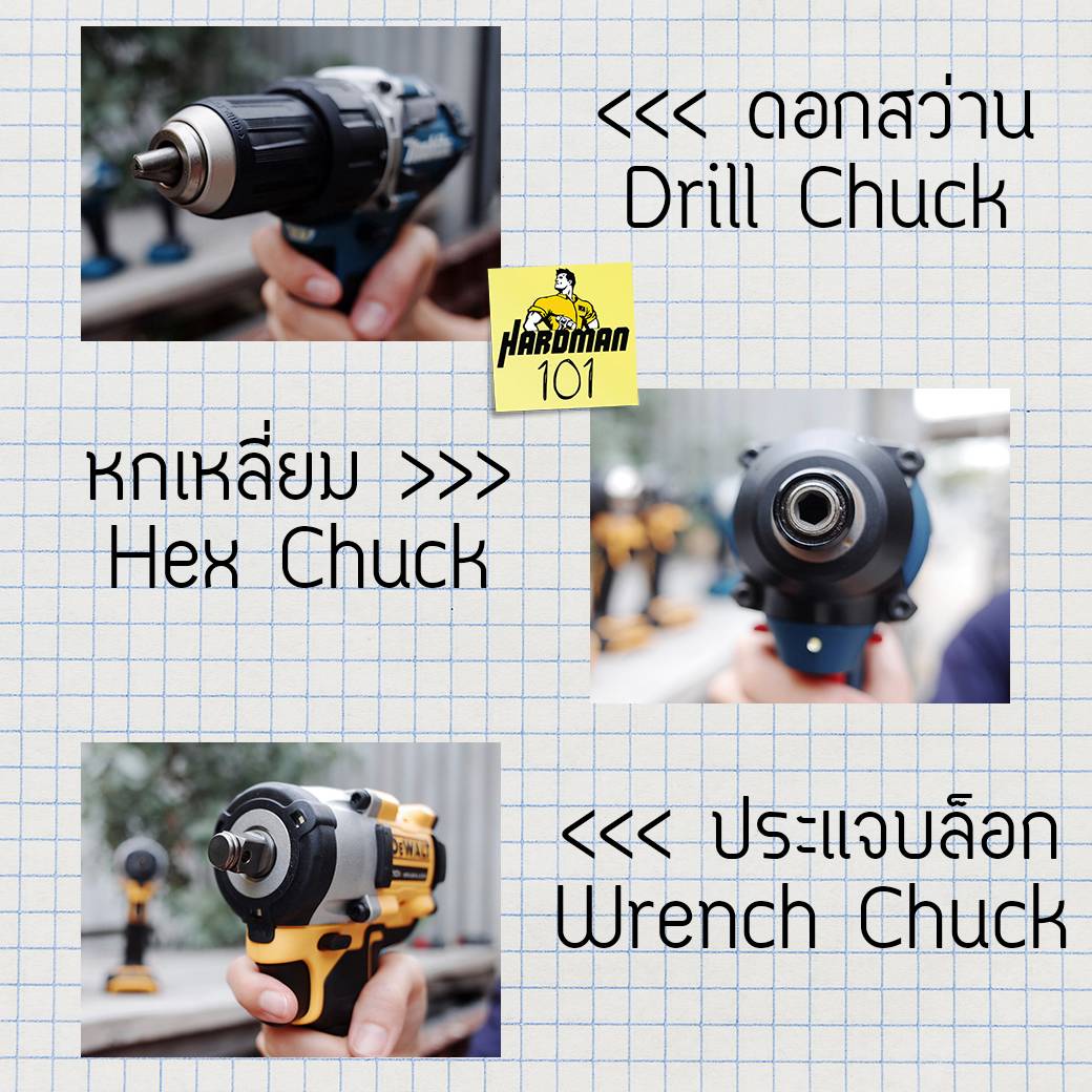 1.แบบดอกสว่าน (Drill Chuck) เหมาะสำหรับการเจาะ