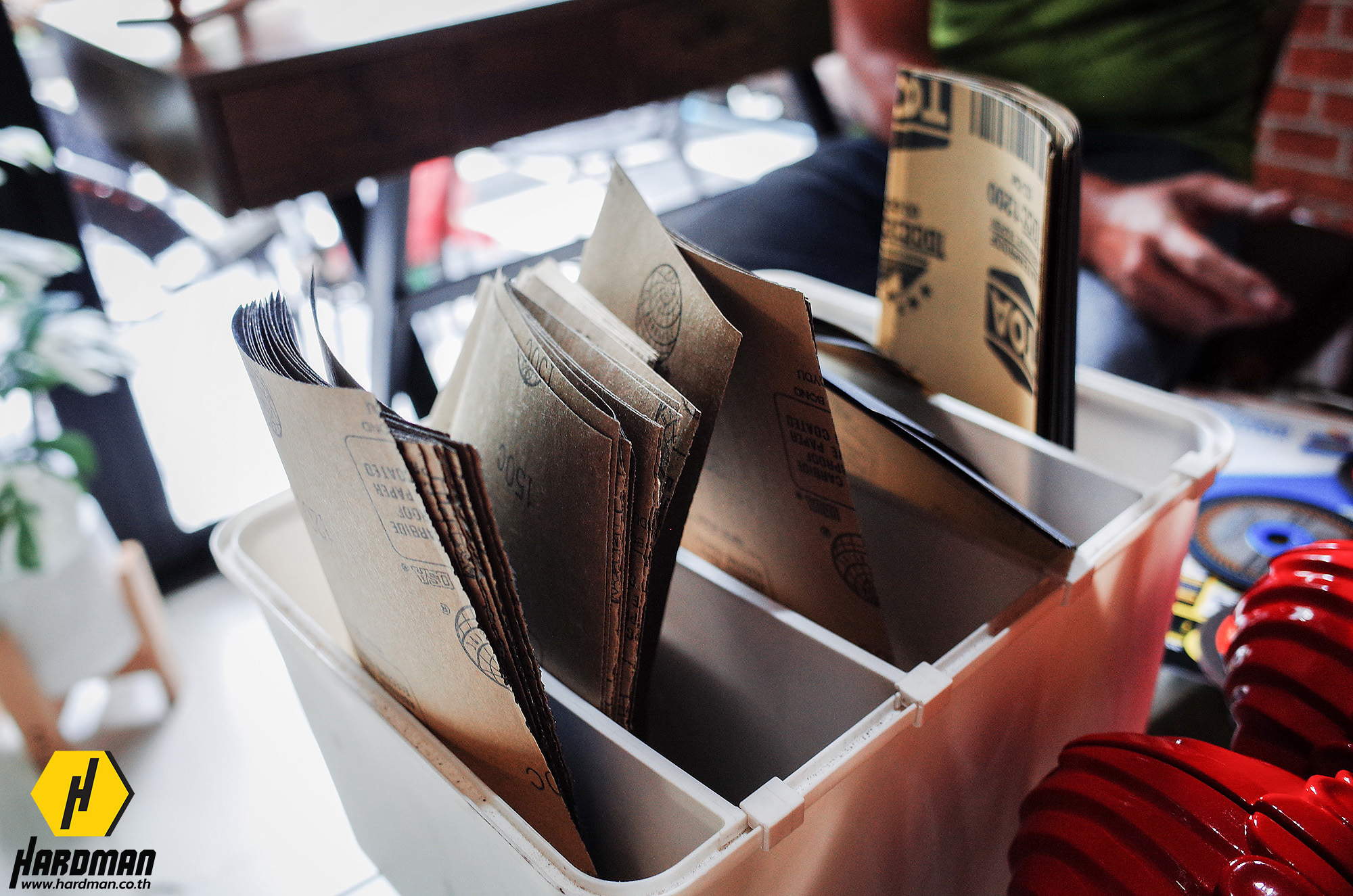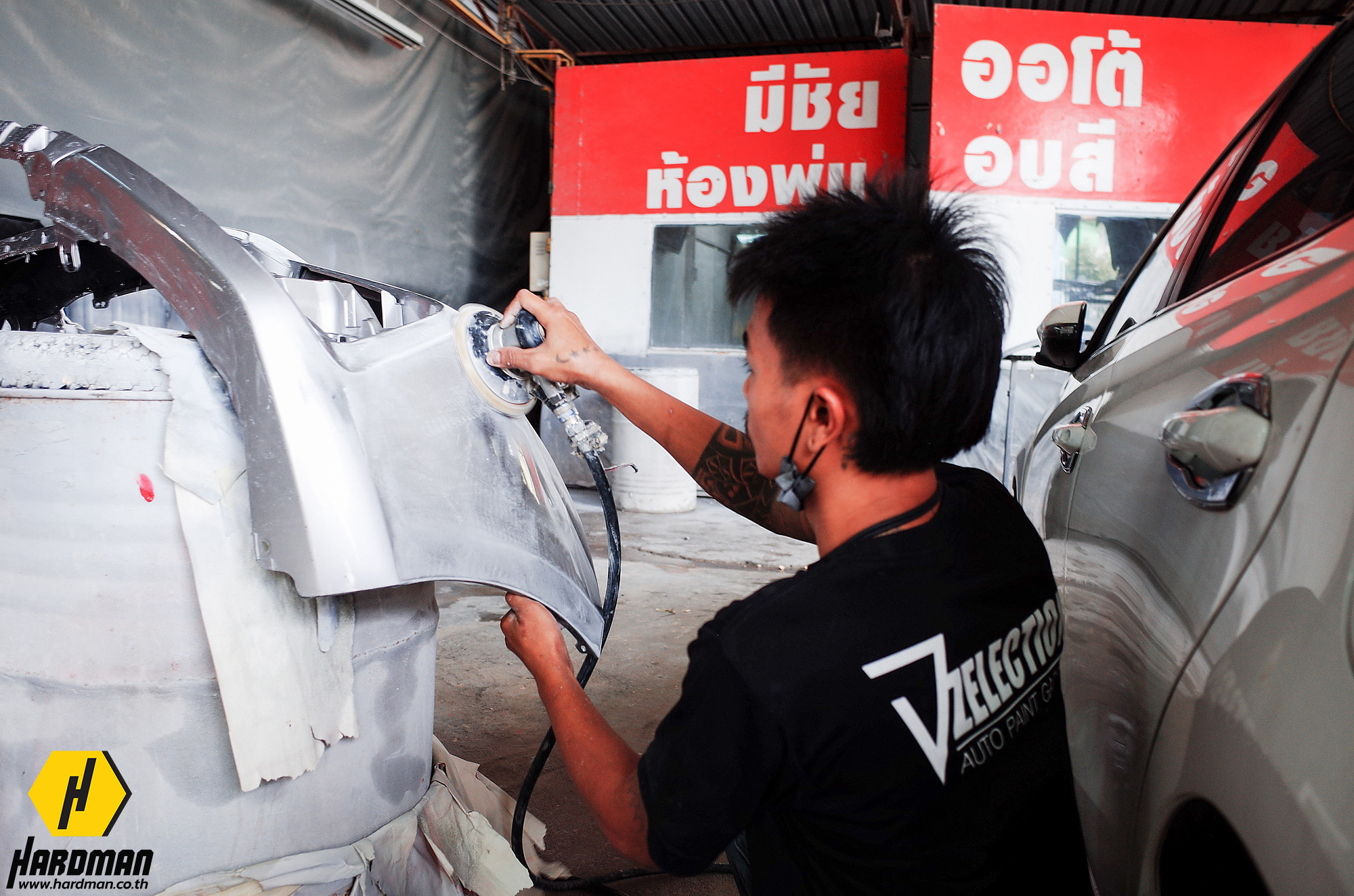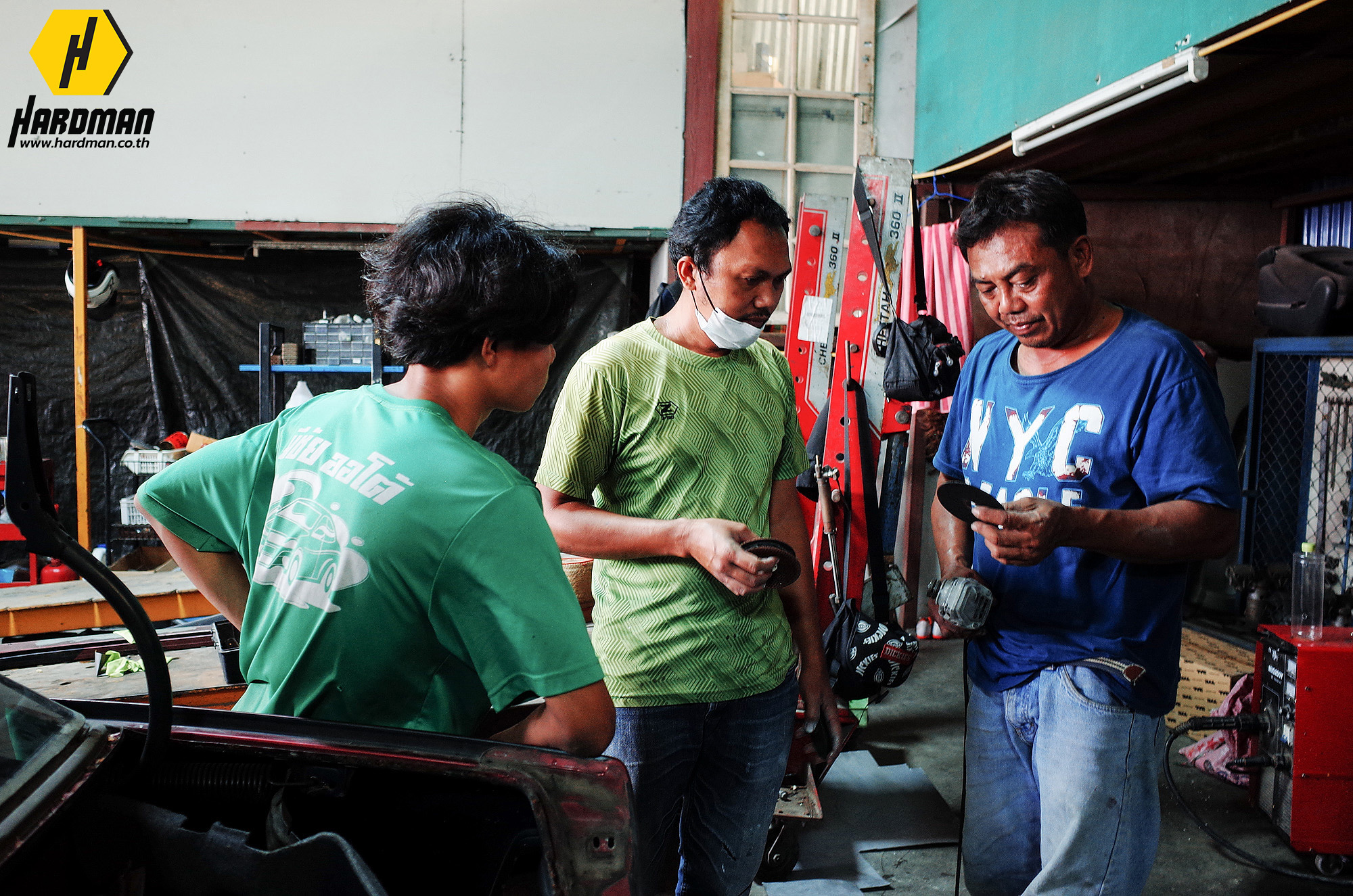 แต่เนื่องจากกิจการของอู่มีชัยดีมาก ทำให้ไม่มีเวลาออกไปเลือกซื้ออุปกรณ์หรือวัสดุสิ้นเปลืองต่างๆ เช่น ใบเจียร ใบตัด กระดาษทรายน้ำ ซึ่งเป็นสิ่งสำคัญในการทำงาน ฮาร์ดแมนจึงมีบริการ ONSITE ! นำเครื่องมือและอุปกรณ์มาให้ทดลองใช้ และจำหน่ายในราคาพิเศษ เพราะเราเชื่อว่าการใช้อุปกรณ์ที่เหมาะสมกับชิ้นงาน จะช่วยลดเวลาการทำงานและเพิ่มประสิทธิภาพในการทำงานด้วย