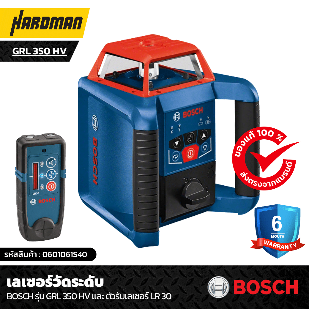 HARDMAN จะขอแนะนำเลเซอร์วัดระดับแบบอัตโนมัติ BOSCH รุ่น GRL 350 HV ที่ ปรับระดับอัตโนมัติได้อย่างรวดเร็วและแม่นยำ มีคุณสมบัติป้องกันฝุ่นและน้ำกระเด็นเปียกตามมาตรฐาน IP 56 เหมาะสำหรับงานหนักในไซต์งาน พร้อมฟังก์ชั่นแจ้งเตือนความผิดพลาดจากการสั่นสะเทือน