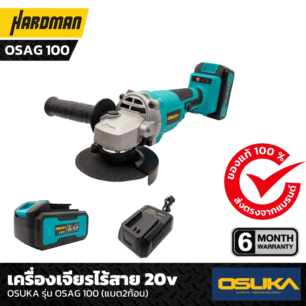 4 เครื่องเจียรไร้สาย 20v OSUKA รุ่น OSAG 100 (ครบชุด)
