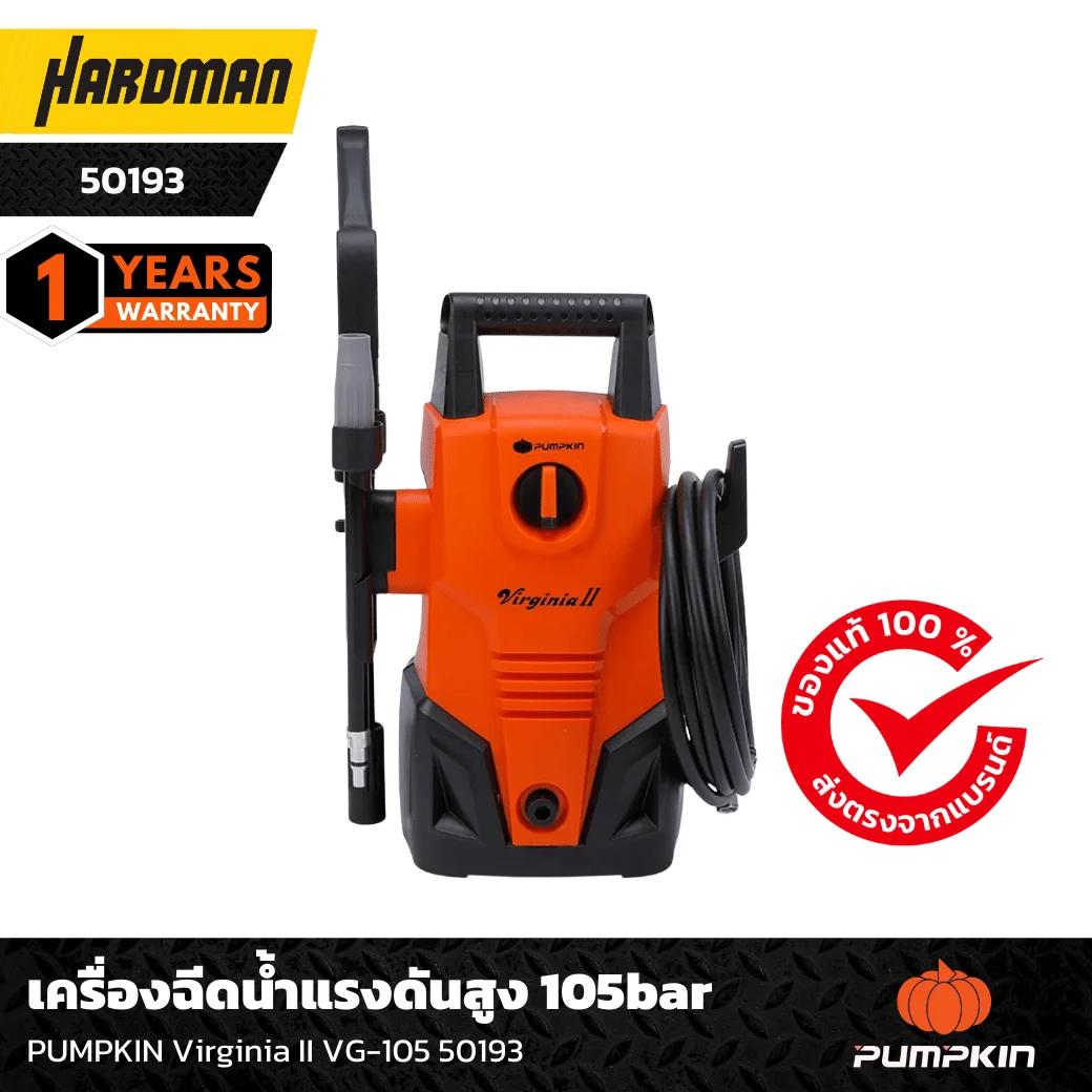 คุณสมบัติ เครื่องฉีดน้ำแรงดันสูง 105bar PUMPKIN Virginia II VG-105 50193