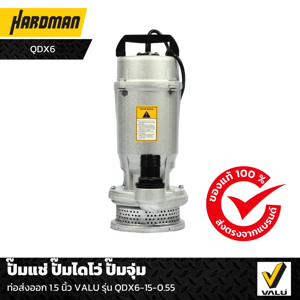 7. ปั๊มแช่ ปั๊มไดโว่ ปั๊มจุ่ม ท่อส่งออก 1.5 นิ้ว VALU รุ่น QDX6-15-0.55