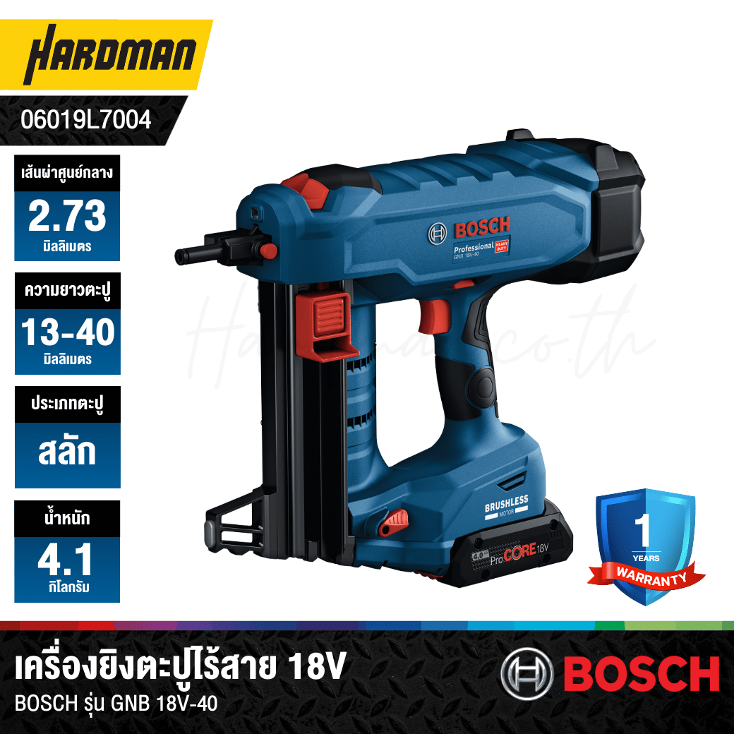 | GNB 18V-40 | Pin Nail | Concrete, Steel | 40 mm | Brushless Motor, Cable Fastening | Building installations |