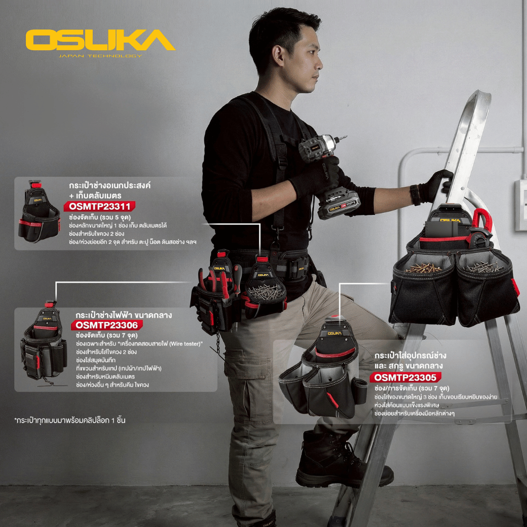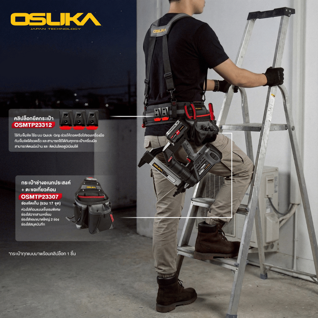 คลิปล็อกยึดกระเป๋า OSUKA รุ่น OSMTP23312 (3 ชิ้น/แพ็ค) เป็นอุปกรณ์เสริมสำหรับระบบกระเป๋าและเข็มขัดช่าง ช่วยให้สามารถยึดกระเป๋าเครื่องมือหรืออุปกรณ์ต่าง ๆ เข้ากับเข็มขัดหรือชุดอุปกรณ์ได้อย่างมั่นคง เพิ่มความสะดวกในการพกพาและหยิบใช้งานระหว่างทำงานช่าง