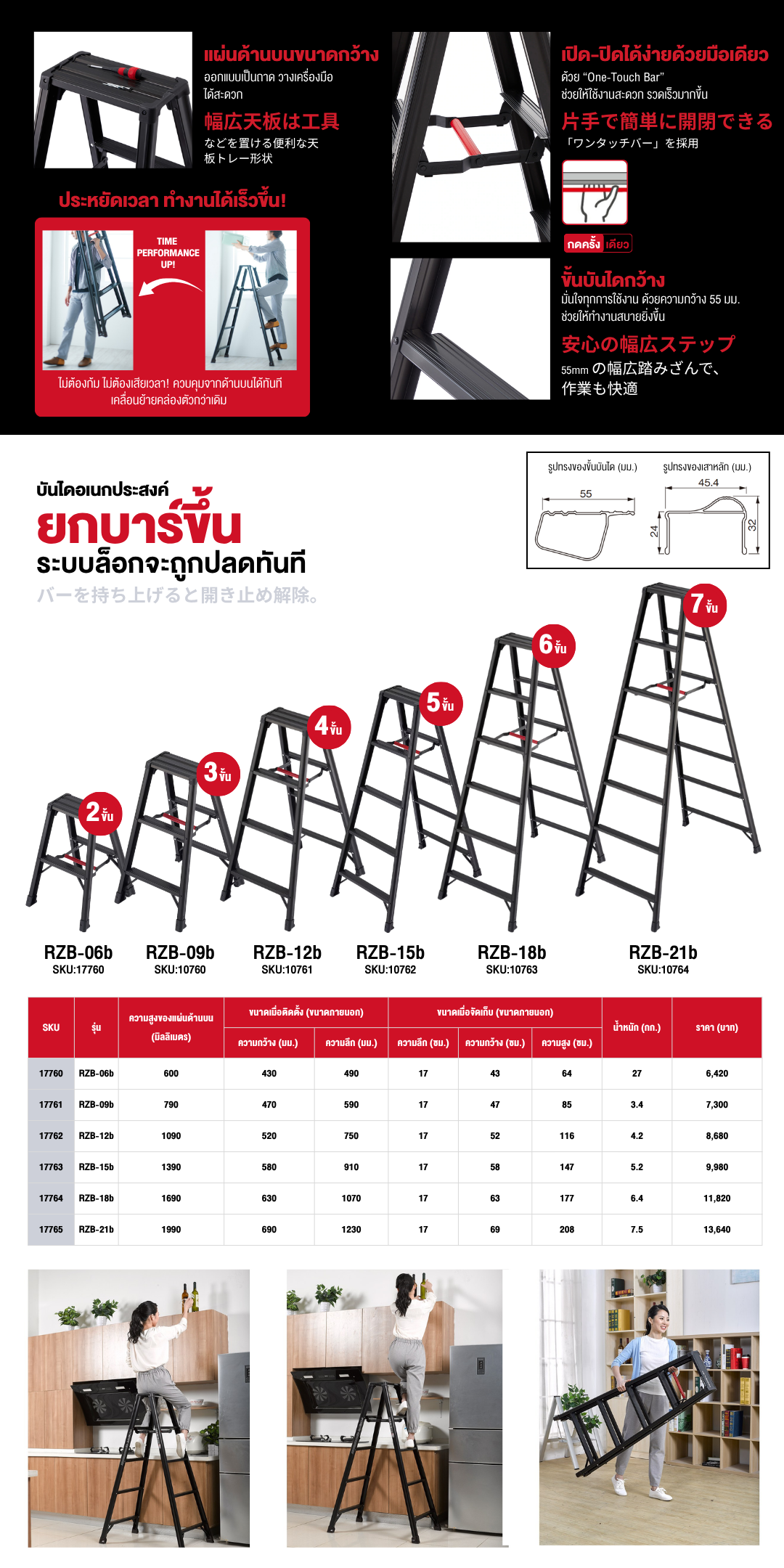 คุณสมบัติของบันไดอะลูมิเนียม 2 ขั้น HASEGAWA รุ่น RZB-06b